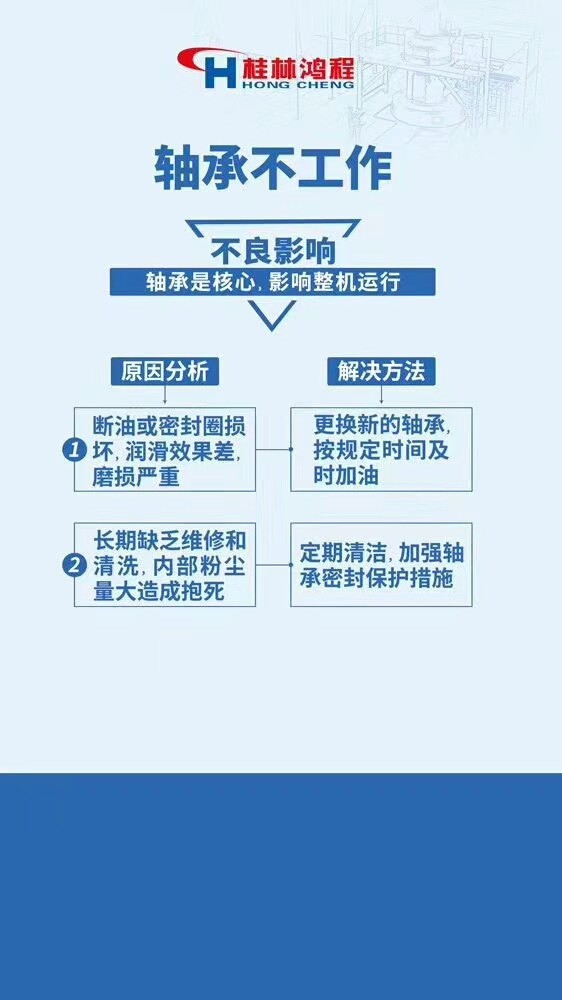 1.風機振動過大 2.石灰磨粉機不出粉或者出粉少 3.傳動裝置和風機油條發(fā)熱 4.石灰磨粉機主機振動或者噪音過大 5.石灰磨粉機軸承不工作 6.石灰磨粉機主機電流過大,機溫上升。